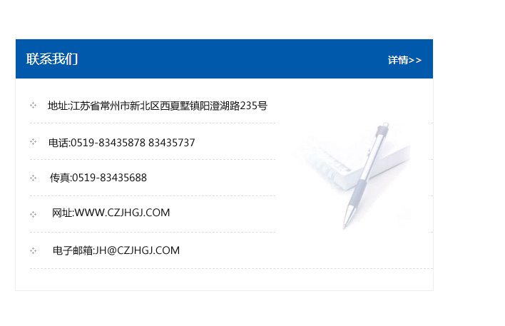 地址:常州市新北區友邦商務大廈1幢16、17層  電話:0519-85101652  傳真:0519-85112595  郵編:213022  網址:www.cz-jiayue_cn.bjdvalve.com  郵箱:xiajifengaa@163.com